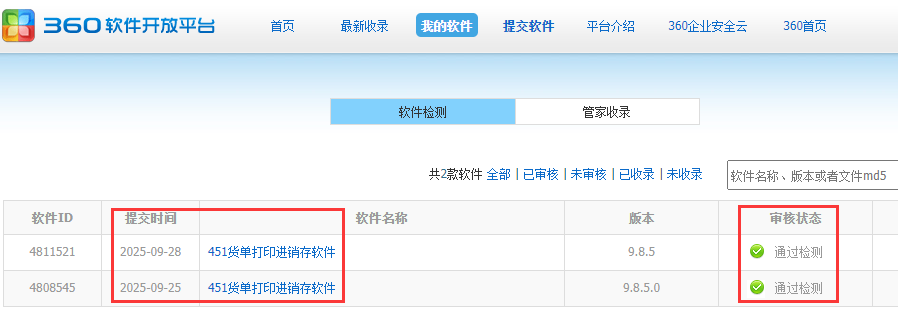 451货单打印进销存软件 软件于 2025-09-29 通过360检测, 检测完全通过, 敬请放心下载使用! |